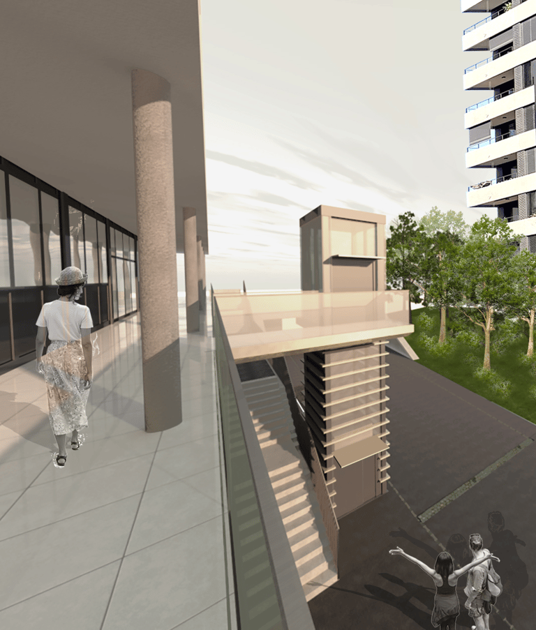 Création d'un ascenseur extérieur et d'une passerelle d'accès à une coursive